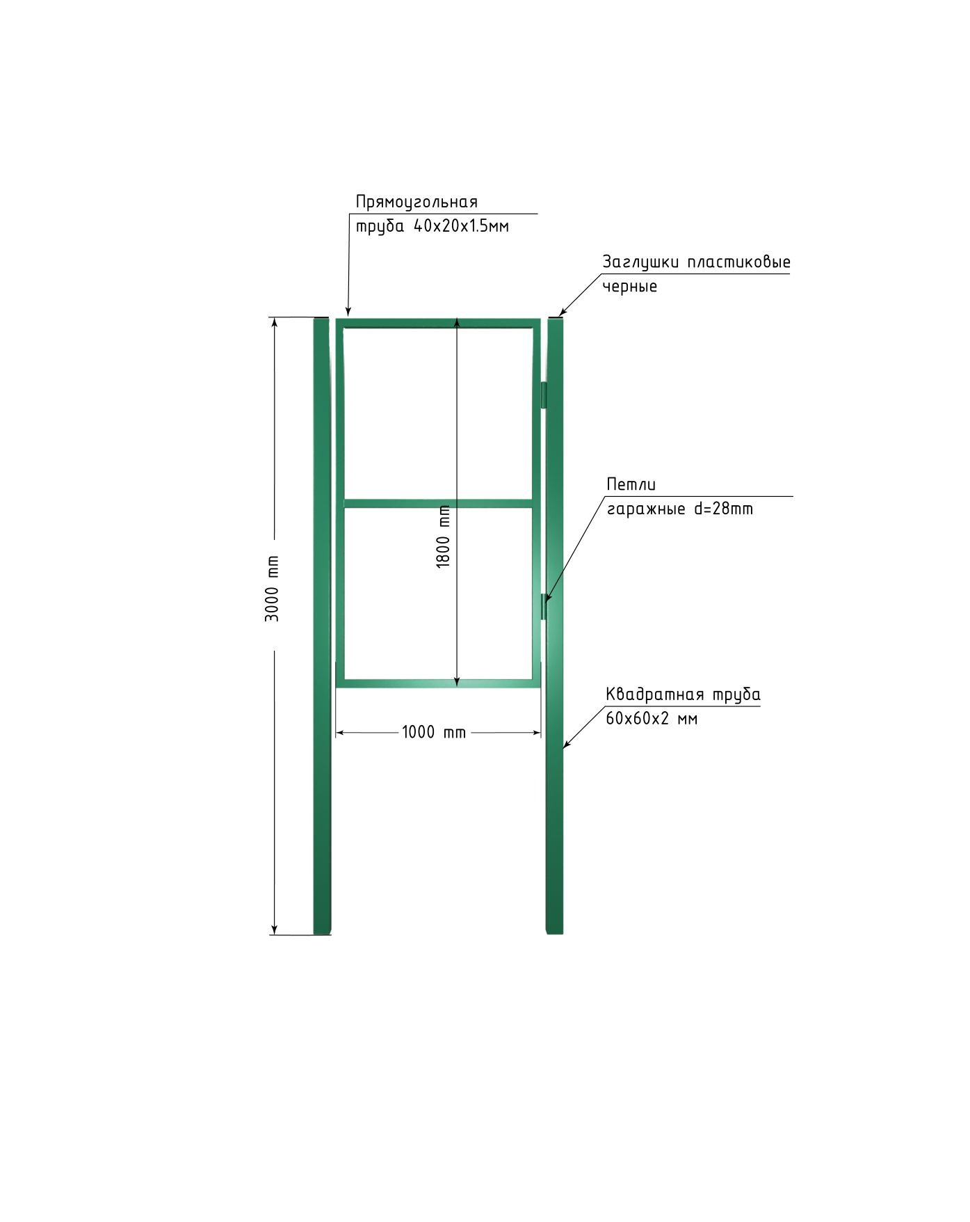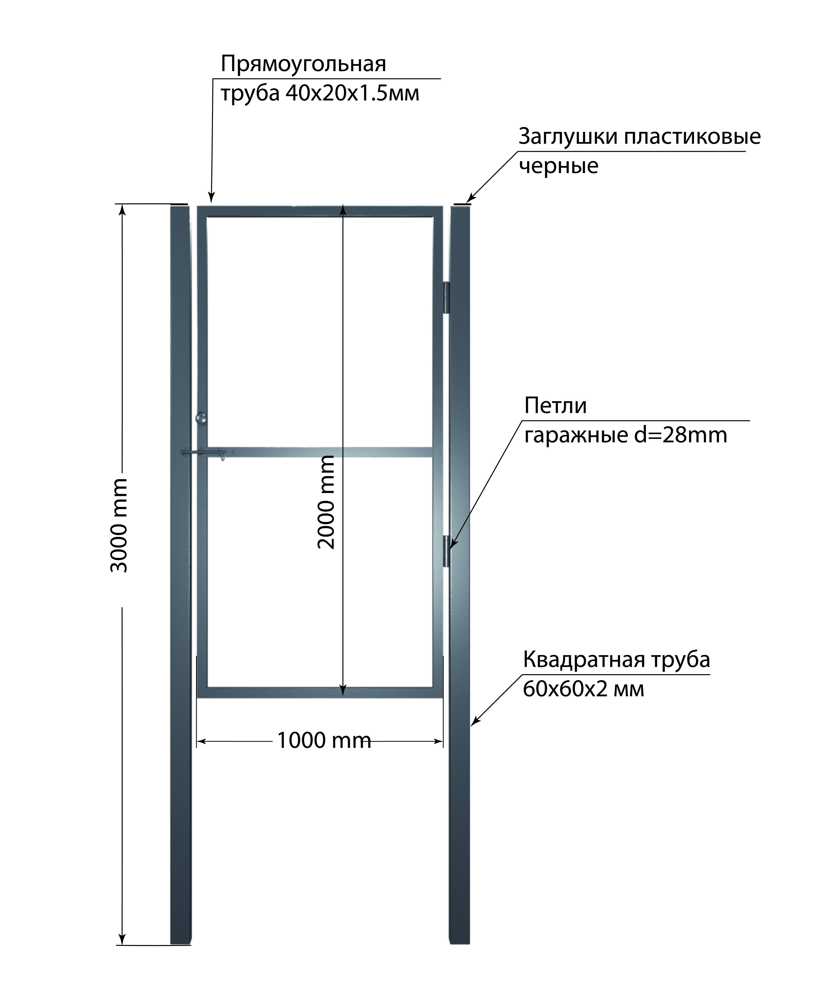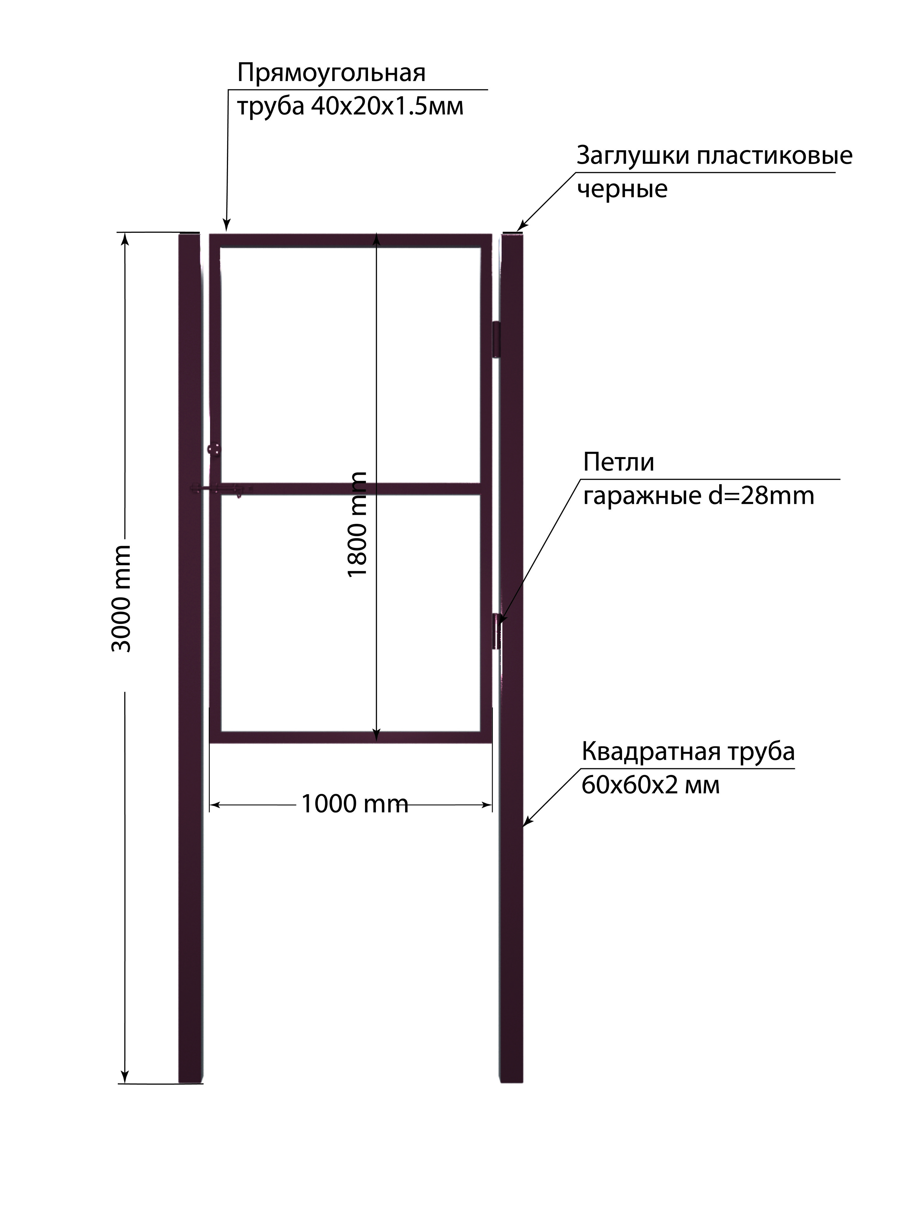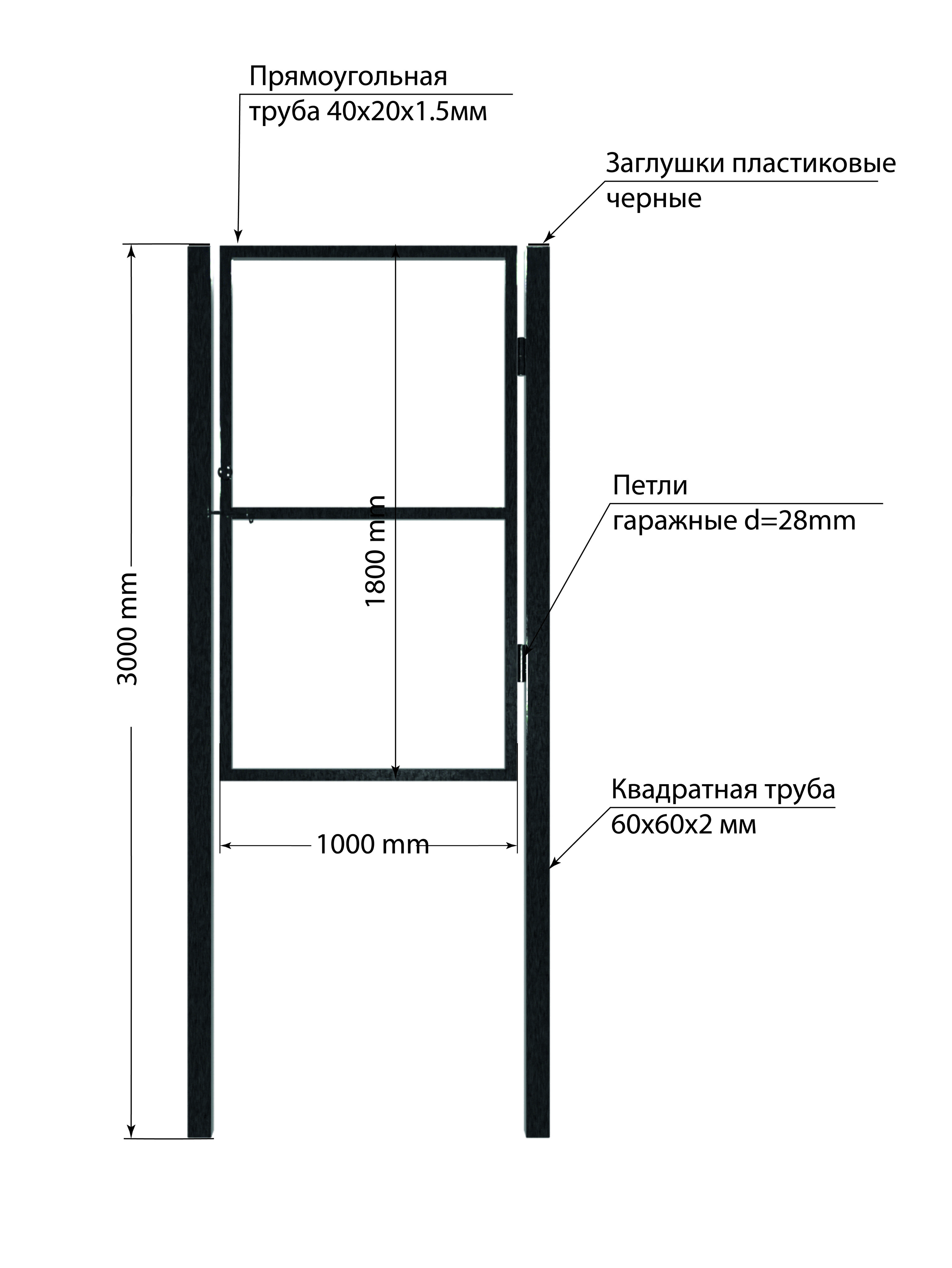 Створка из проф.трубы 40х20х1,5мм -1000х1800мм,
