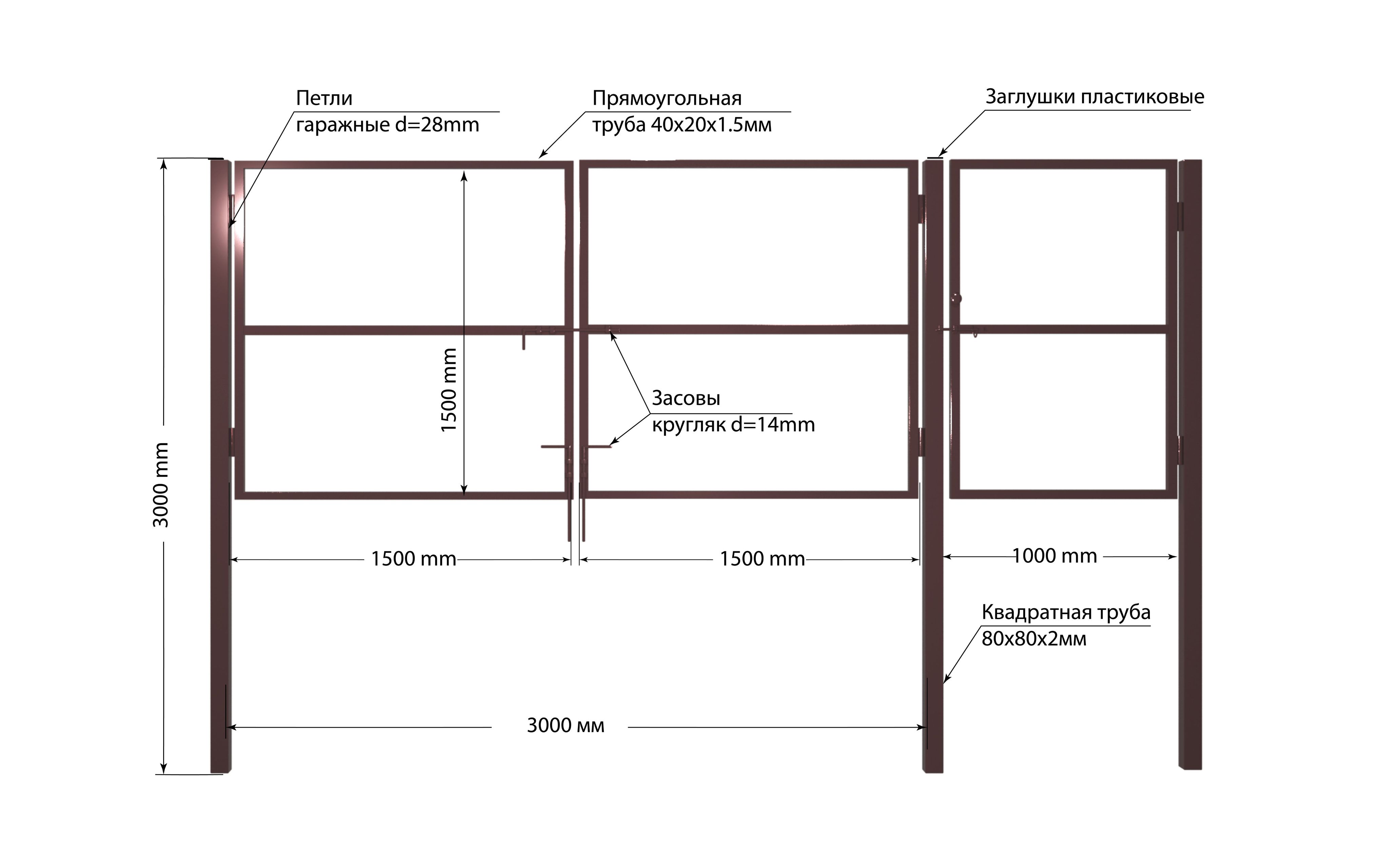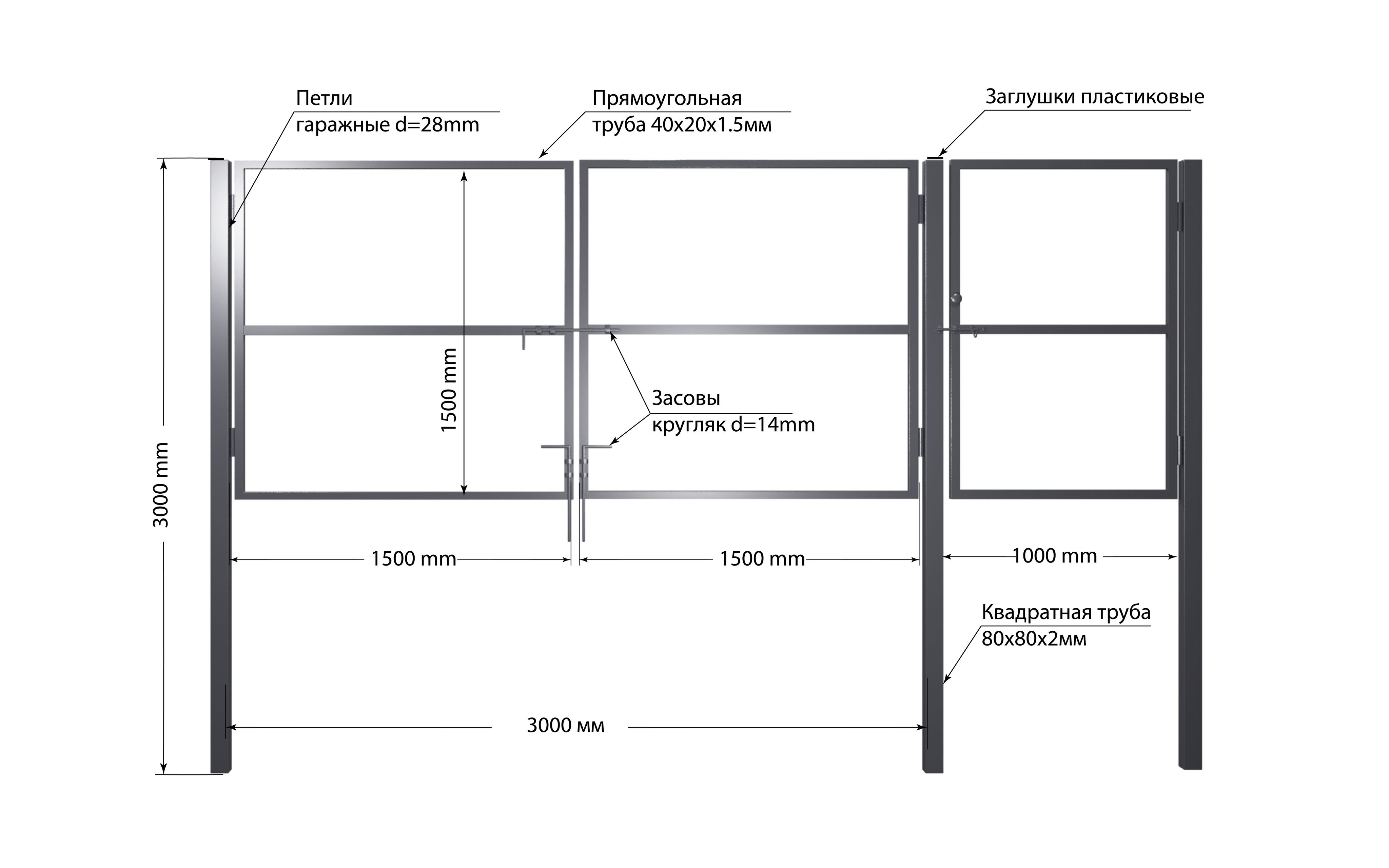 - Створки ворот 2шт. - проф.труба 40х20х1,5мм.