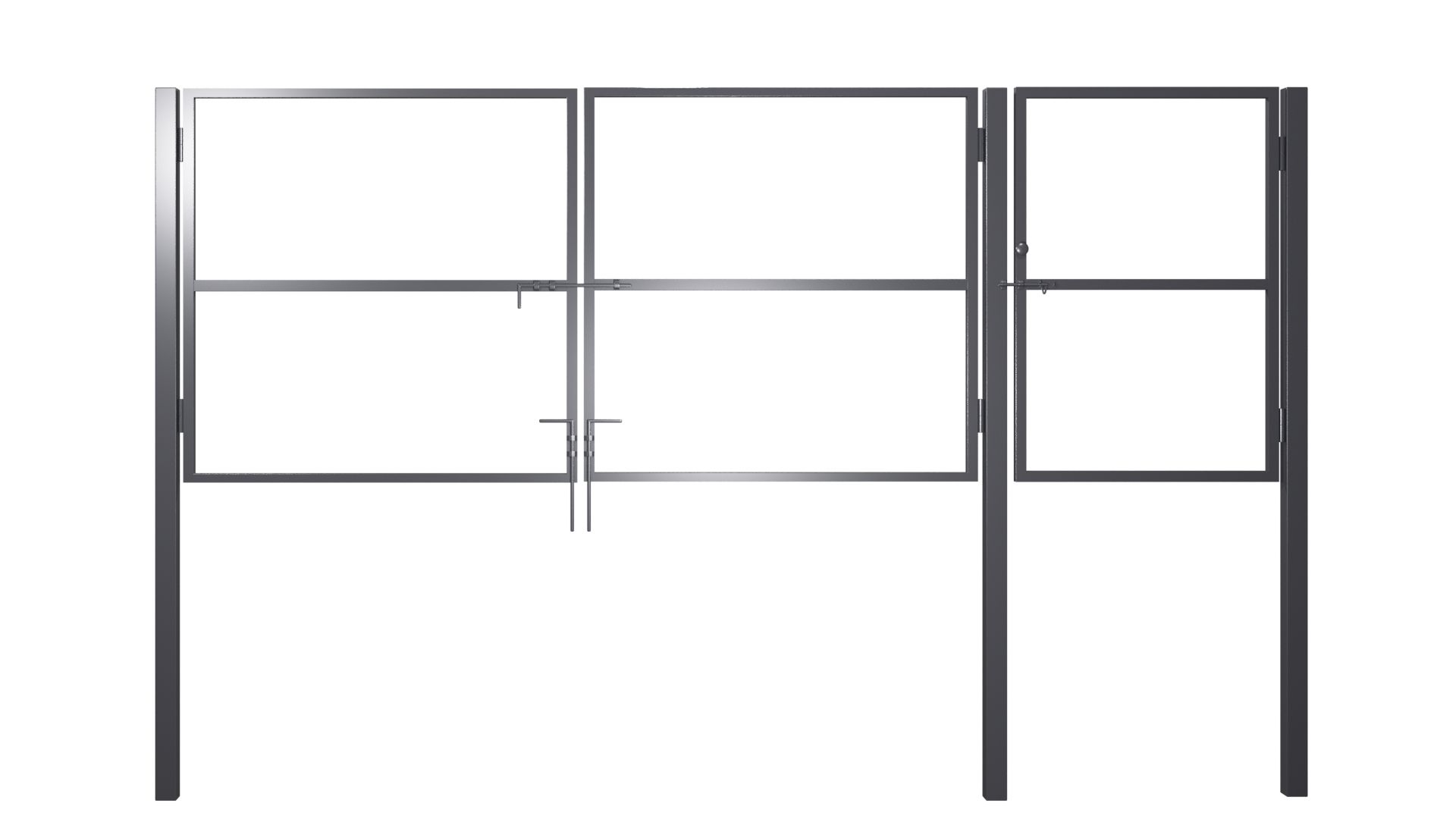 Качественная входная группа состоящая из каркаса распашных ворот и калитки.